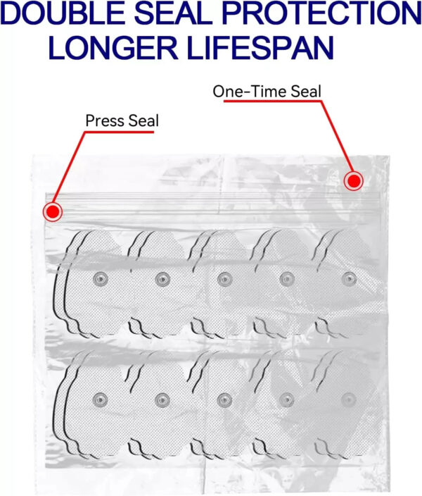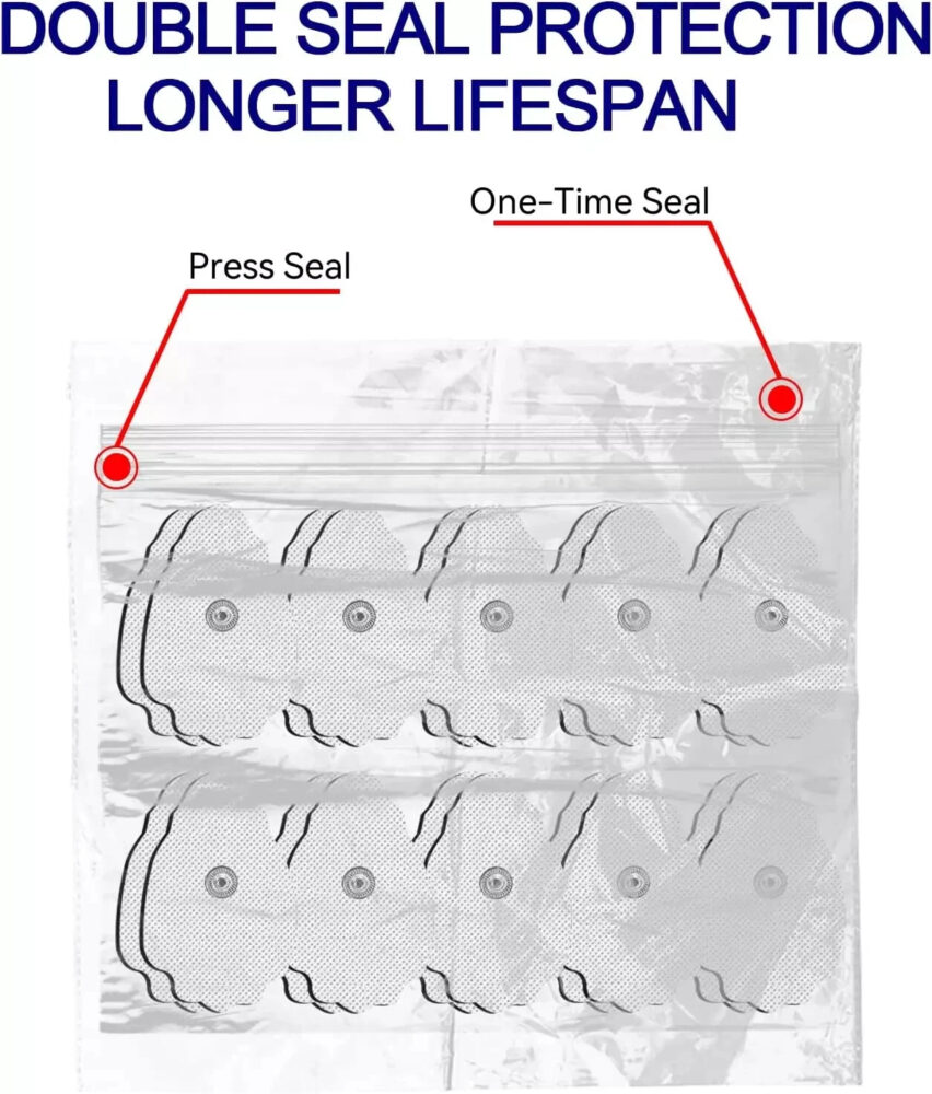 - Reusable Pads With Re-sealable Packaging: These 20 packs TENS electrodes pads are made by an industry-leading adhesive, and washable and reusable, which provides excellent self-adhesive performance for a maximum of 50 times reusability by using in the right way. Our TENS pads come packed in a resealable bag for long-lasting durability, ensuring that you always have a fresh supply of high-quality replacement pads on hand.