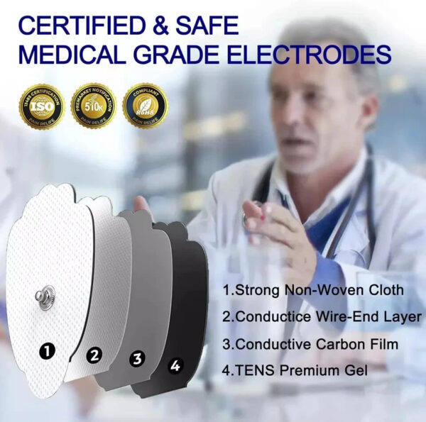 - Premium Medical Electrodes – VOVOU TENS Unit Muscle Stimulator Pads are the perfect addition to your daily home use. Our high-quality electrodes are CE, RoHS certified and FDA cleared, ensuring optimal safety and protection from harmful additives and prescription medication. They’re also latex-free and non-irritating to all skin types, providing excellent self-adhesive performance for a comfortable and effective TENS unit experience.