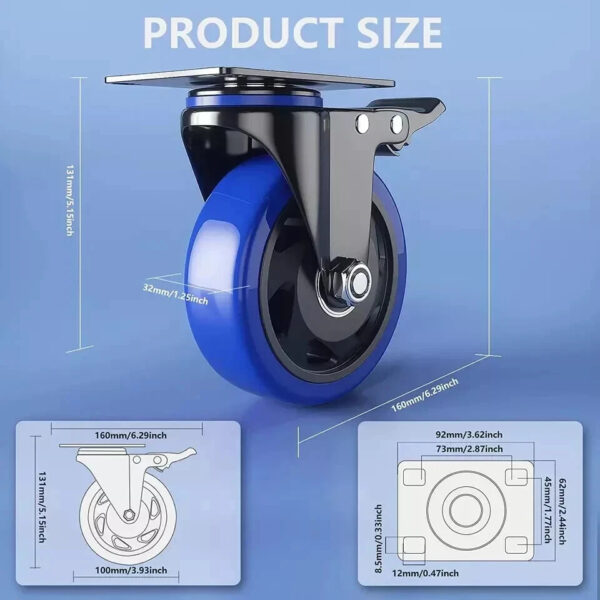 Be the first to review “4 Inch Caster Wheels with Brake, Heavy Duty Casters Set of 4, Swivel Top Plate”