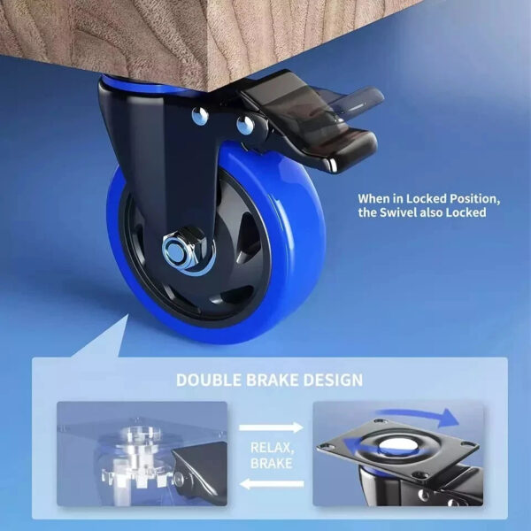 • DOUBLE SAFETY BRAKE: Our top plate swivel caster wheels can locks the wheel and the swivel simultaneously, holding the equipment firmly remain in place when the 4 inch casters are locked. Locking casters design make it more safe when used as rolling workbench casters, industrial casters, heavy-duty casters, especially on uneven surface.