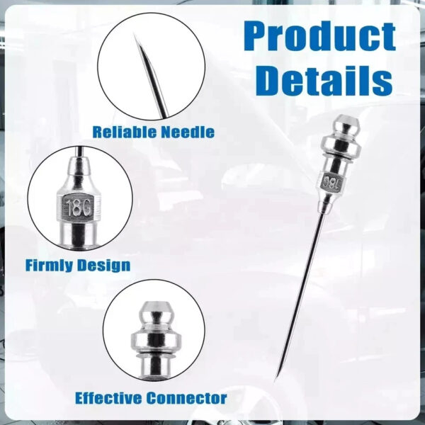 - Product Includes: You will get 4 grease injector needle and the overall length of the product is about 2.36in / 6cm and the tip is about 1.49in / 3.8cm long.