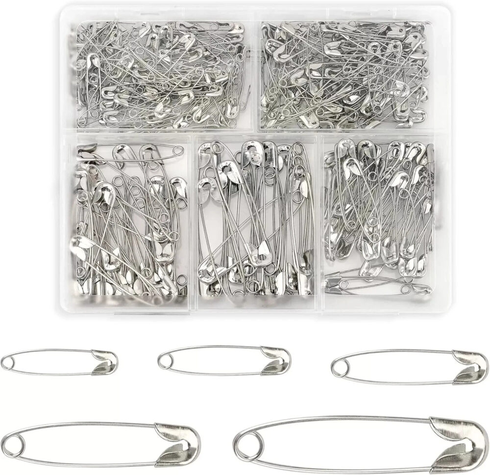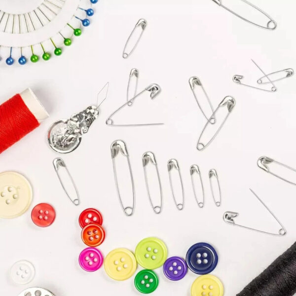 - Safety Pins: These safety pins can be used as sewing supplies,sewing pins for fabric,and so on. Large safety pins come with a clear case for easy storage.