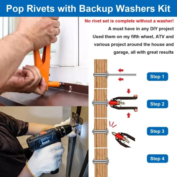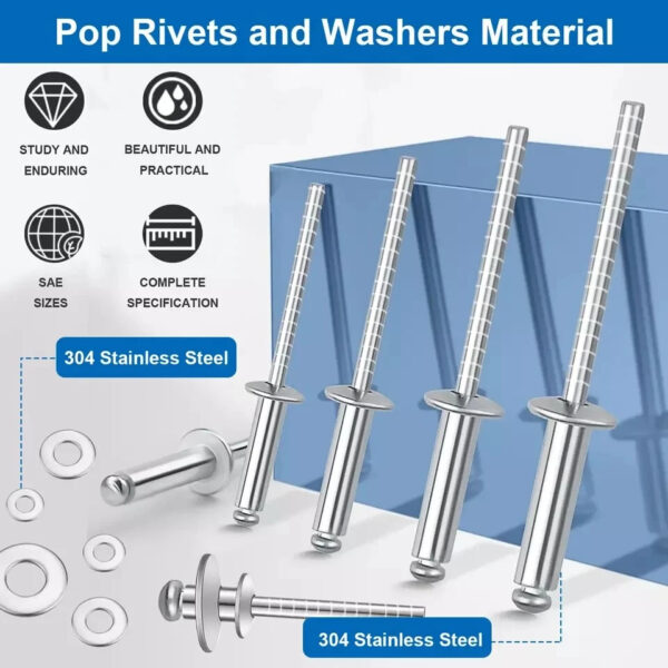 - Enhanced Stability with Washers: The included 304 stainless steel washers provide critical added support, especially in soft materials or applications requiring a larger bearing surface. This combination prevents rivet pull-out and significantly boosts overall stability during installation