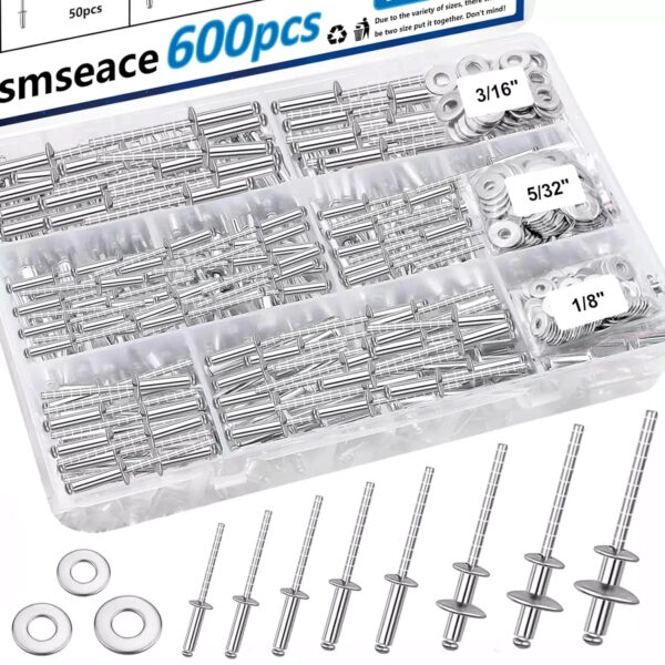 - Complete and Organized Kit: This comprehensive set features 9 sizes of SAE rivets and 3 sizes of stainless steel washers, all conveniently housed in a labeled plastic box