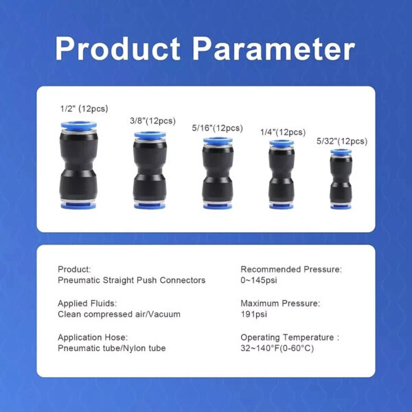 - 5 Sizes: Comes in five different sizes to fit different tube sizes, including 5/32″, 1/4″, 5/16″, 3/8″ and 1/2″, for 5/32″,1 /4″, 5 /16″, 3/8″, 1/2″ outer diameter pipes, you can choose different sizes according to your needs.