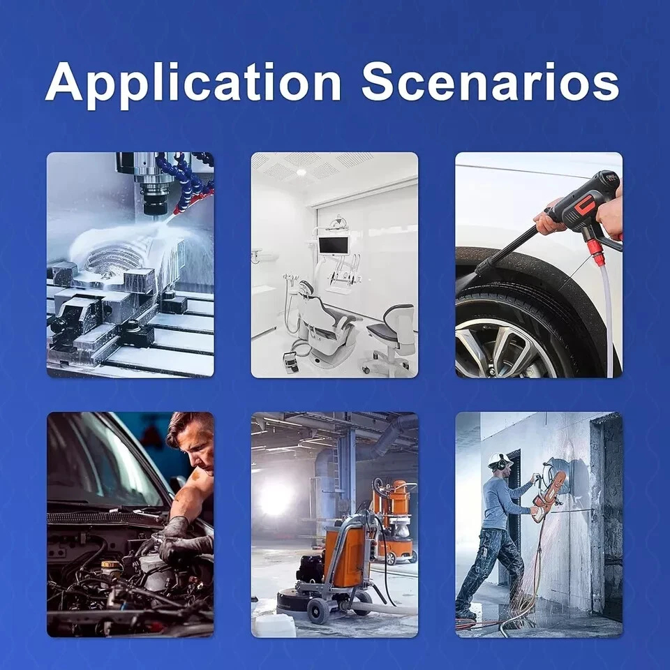 - Multi-scenario Application: Working pressure: 0~1Mpa, working temperature: 0~60°C, suitable for automation industry, auto repair, workshop equipment, decorative painting, woodworking, dental equipment and other fields.