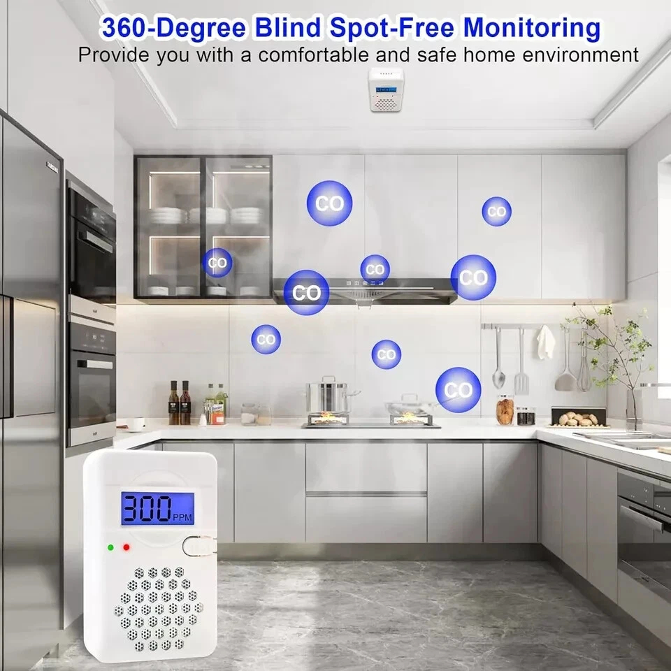 - Light and Big buzze Sound Alarm Warning: When dangerous levels of carbon monoxide are detected, the red LED will flash and alarm mode will sound an 85 decibel alarm to protect your family and you.