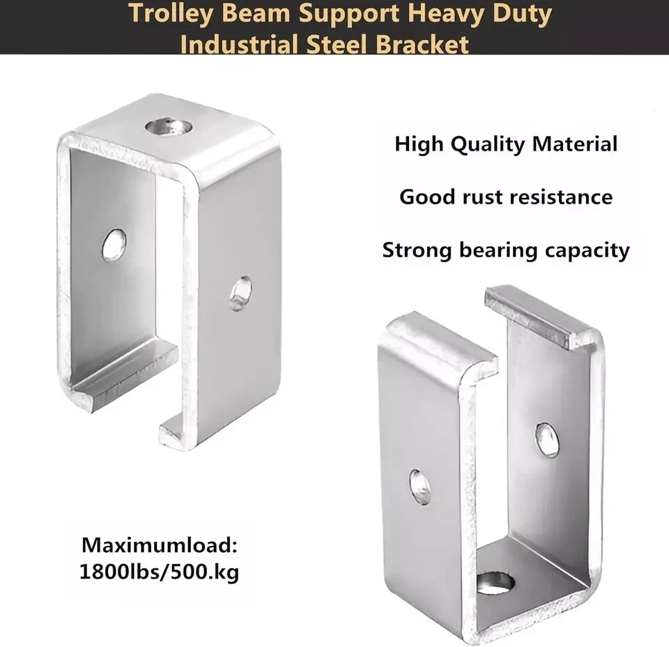 - [Product Material]: Channel Trolley Track Hange Bracket is made of high-strength solid steel, surface cold-galvanized treatment, good rust resistance, uniform coating, strong adhesion