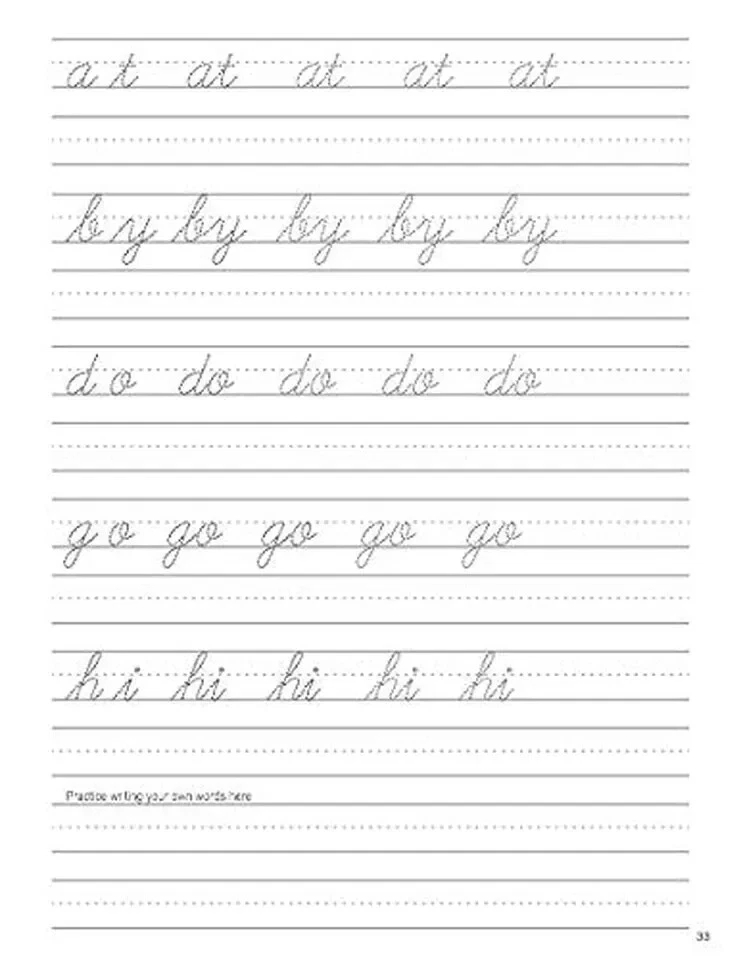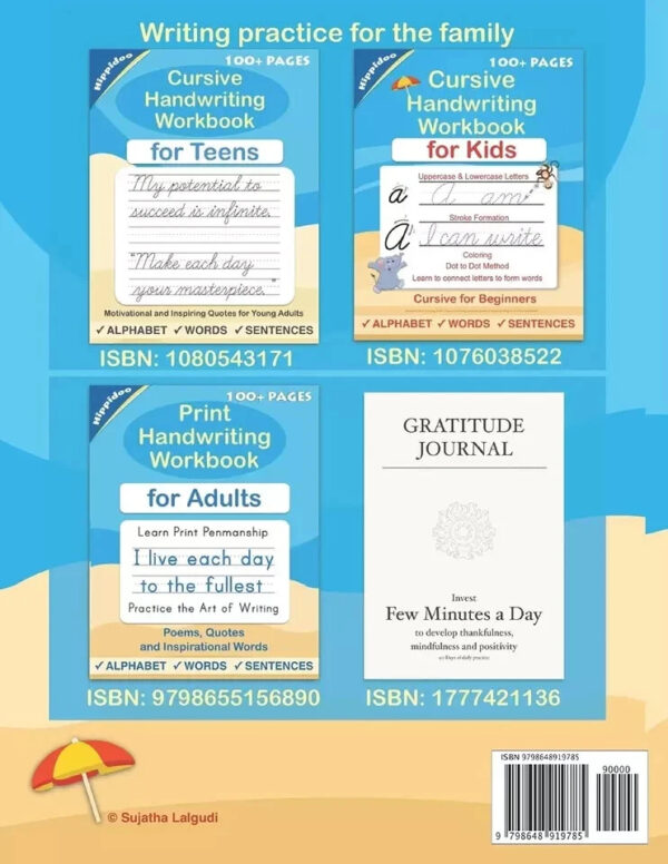 The book starts with the guided basic alphabet to develop the required muscle memory and progressively advances to writing using a smaller letter size. It builds an understanding of how to form each cursive letter correctly and connect them.