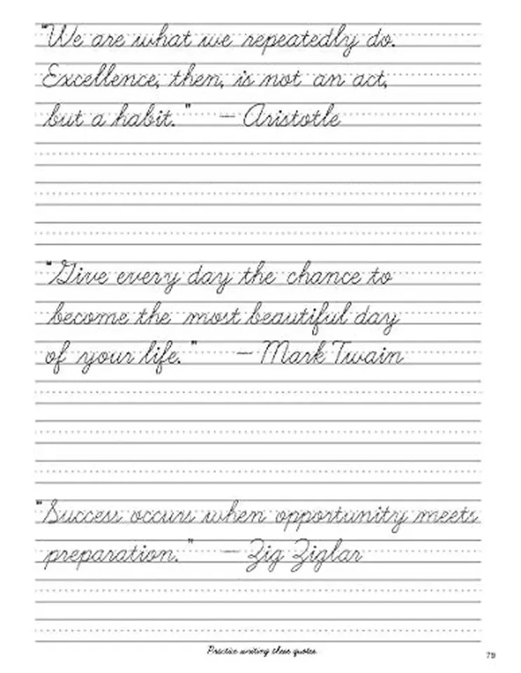 - The included thoughtful quotes and motivational sentences give a great foundation for writing in cursive while keeping the writing interesting and awe inspiring