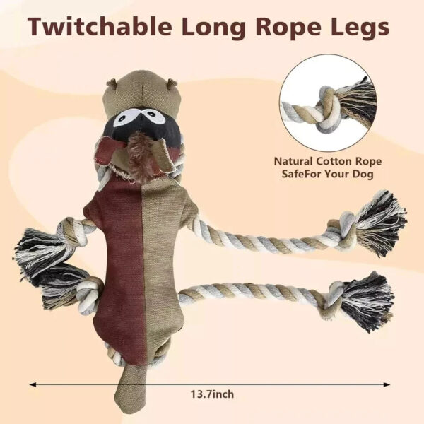 - 【Large Size and Long ropes】 The dog toy for large dogs is 13.3*9 inch,larger than most of the dog toys.It has two long twitchable ropes with lenth 13.7 inch,which could move insed the toy.This big dog toys are perfect for tug of war and other interactive games It has a built-in squeaker,which helps entice your dogs play for extra excitement and make them feel less bored.