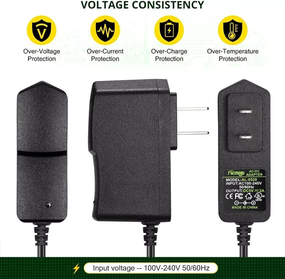 - 【Power Specification】– Power Supply with Input 100-240V- 50/60Hz and Output: 5V/2A (2000mA), 92cm (3 feet) Cable Length. Small and lightweight for ease of use as well as ability to take on go.