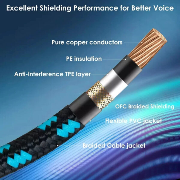 - Low Noise: CeMeow guitar cord uses coaxial cable, which far exceeds other cable structure designs in shielding performance and frequency response bandwidth. It uses high-purity 22AWG oxygen-free copper (OFC) conductive copper wire to enhance signal transmission and stability. The instrument cable also features a 6-layer protective design to maximize physical noise reduction and anti-interference performance