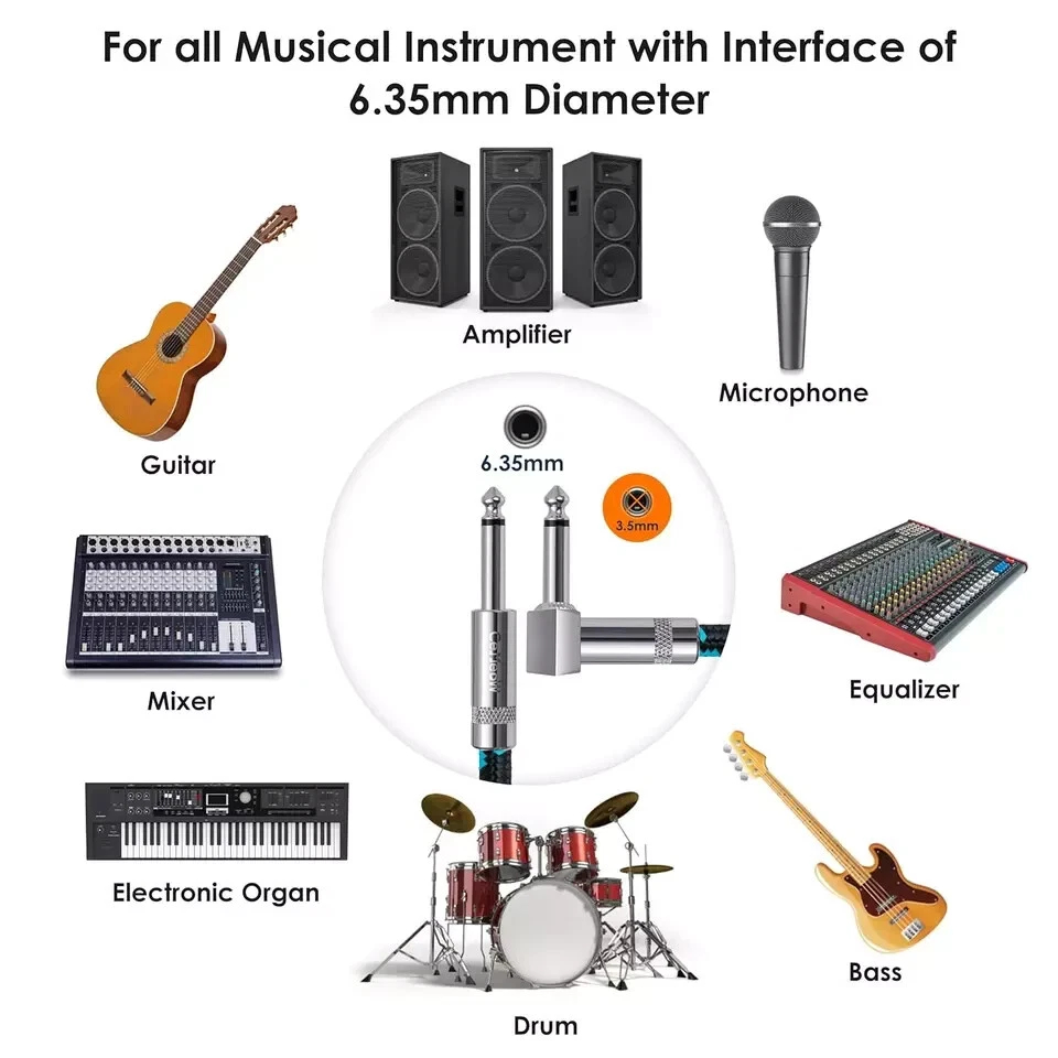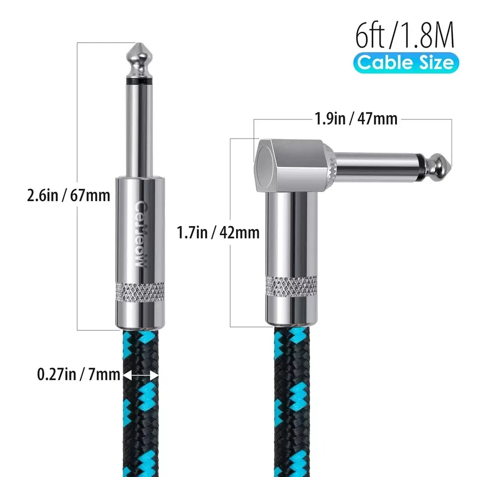 - Wide Application: CeMeow instrument cable is suitable for instruments and equipment with a 6.35mm interface diameter, such as electric guitars, basses, mixers, amplifiers, speakers, keyboards, effects pedals, electronic pianos or drums, decoders, equalizers, and more. It is versatile for various scenarios