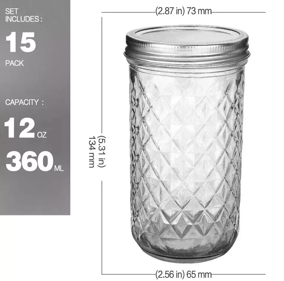 • Set Includes: Case of 15 Mason Jars and Silver Lids.This glass jar set is of superior quality and designed for your convenience