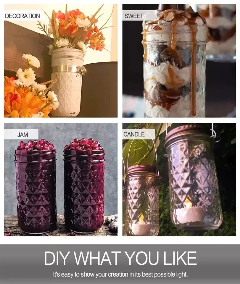 Mason Jars 12 OZ, Canning Jars Jelly Jars With Regular Lids, Ideal for Jam