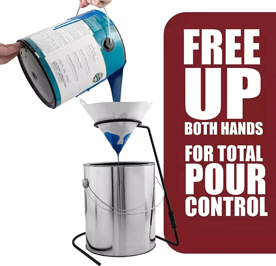 - This uniquely designed stand is the perfect solution for painters and finishers! The stand keeps your strainer neatly perched above the paint can or container so you can have both hands free. This allows you to use both hands on the can so you can pour your paint of finish into the new container with complete control.