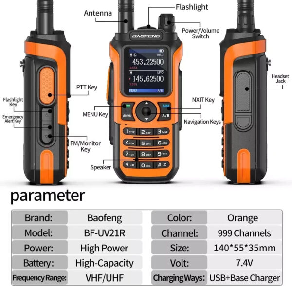 • 🌴【Why You Choose Us】Larger screen, better colors, and good quality antenna. Compared to traditional Baofeng radio screens such as Baofeng UV-5R,BF-F8, UV-9R Plus /Pro,UV-9G,and Baofeng UV-82 etc,the UV-21R has a larger screen to display channel information and power, giving you a better visual experience than typical portable ham radios.