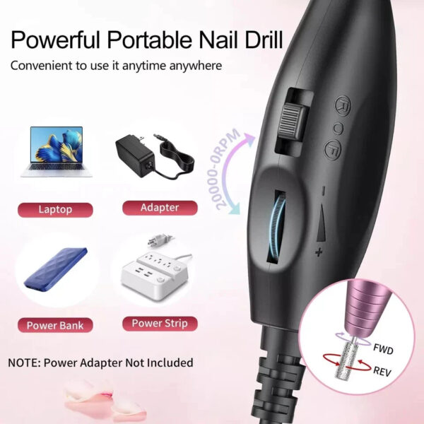 • 【Portable & Easy to Use】The electric nail file is made of high-quality metal, tiny and lightweight. With adjustable speed & direction controller, it is easy to use for beginner and all-level nail technicians. You can connect the cord (without adapter) to any USB device to do your nail artwork anytime anywhere.