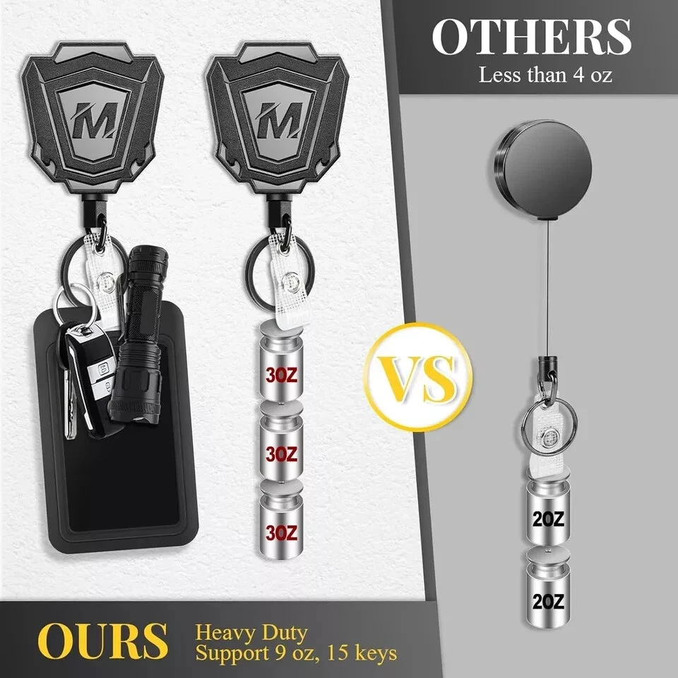 - Truly Heavy-duty: Badge reel retractable features a 0.039 inch high-strength Dyneema cord with strong rebound force that can withstand 9 oz of tension without slide down all the way