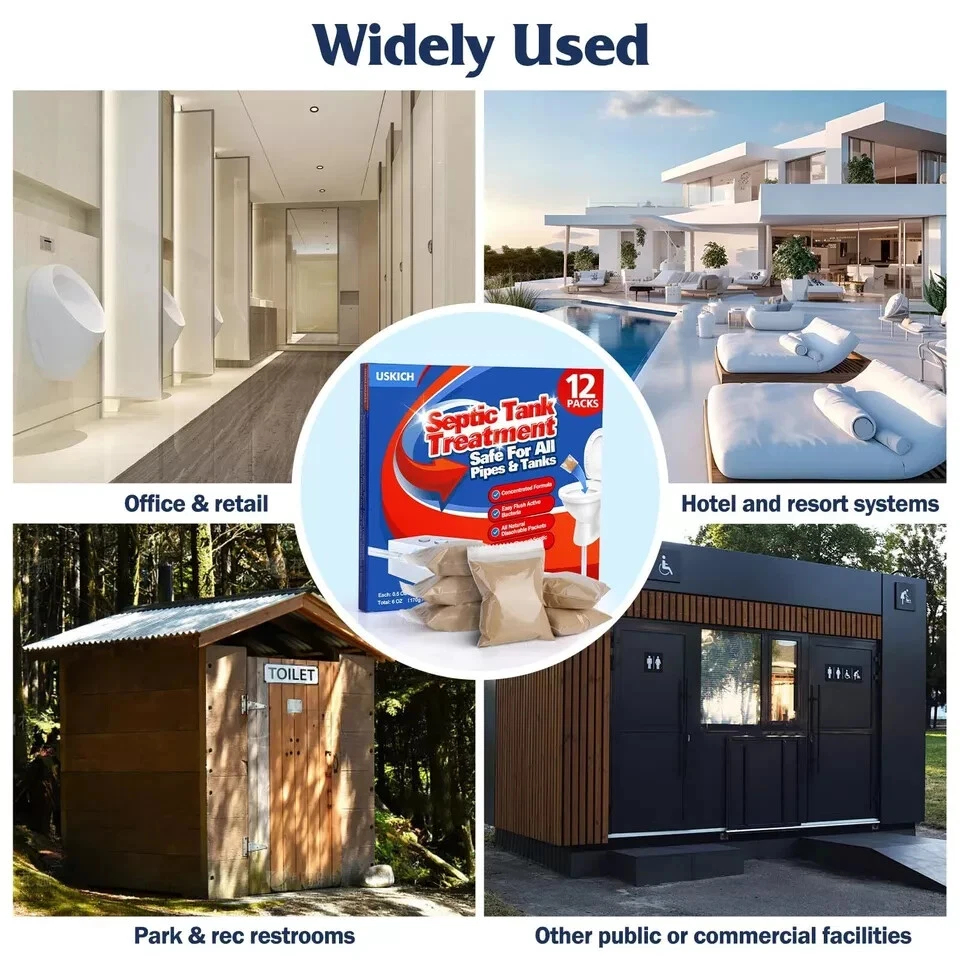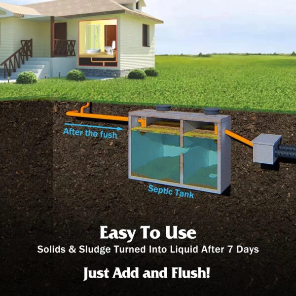 - 🌿Wide Application: The safe ingredients make the septic treatment suitable for almost all septic systems and sewage systems. It can be widely used for household septic tanks, commercial sewage tanks, and sewage tanks in boats or RVs. Just one cleaner keeps numerous septic tank problems away!