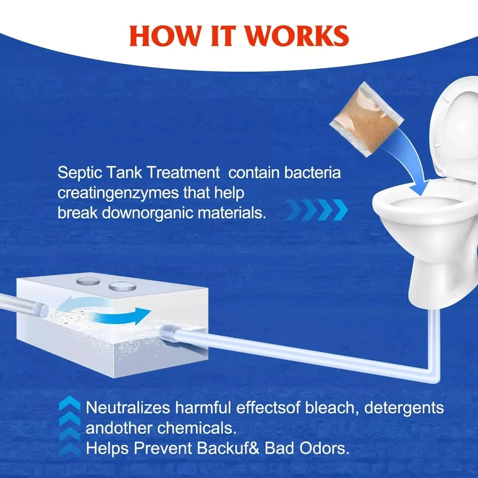 - 🌿 Efficient Biodegradation:Each septic tank treatment packet contains billions of active bacteria cultures,septic tank enzymes that can efficiently dissolve grease, paper, and other wastes, which reduces buildups and prevents them from overflowing, saving the trouble of costly maintenance for septic tanks.