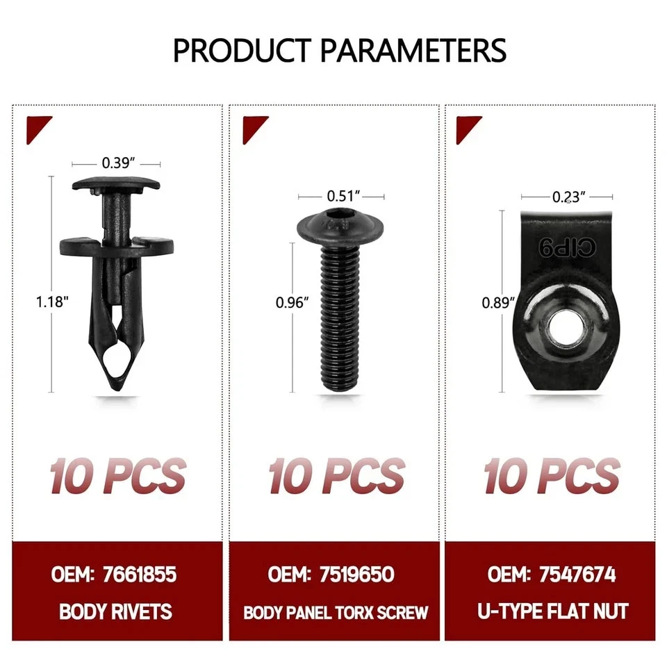 Set of 30Pcs Body Panel Torx Screw 7519650, U-Type Flat Nut 7547674, Plastic Fas