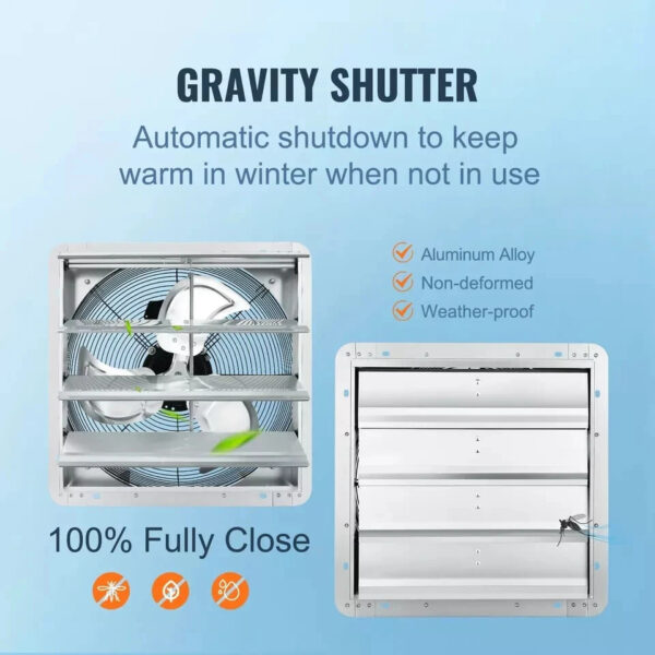 - Rust-proof Material: The shutter exhaust fan has a rugged all-metal structure and features a galvanized steel frame, aluminum alloy fan, and shutter, which is highly resistant to weather, liquid, and dust.