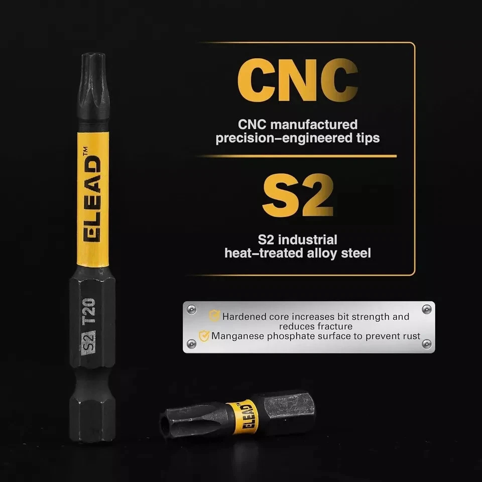 • 【DURABLE CONSTRUCTION】Experience the resilience of our Screwdriver Bit Set, crafted from premium S2 steel. This set offers exceptional longevity with a 10-times longer life expectancy than standard bits, making it an ideal choice for industrial-grade applications.